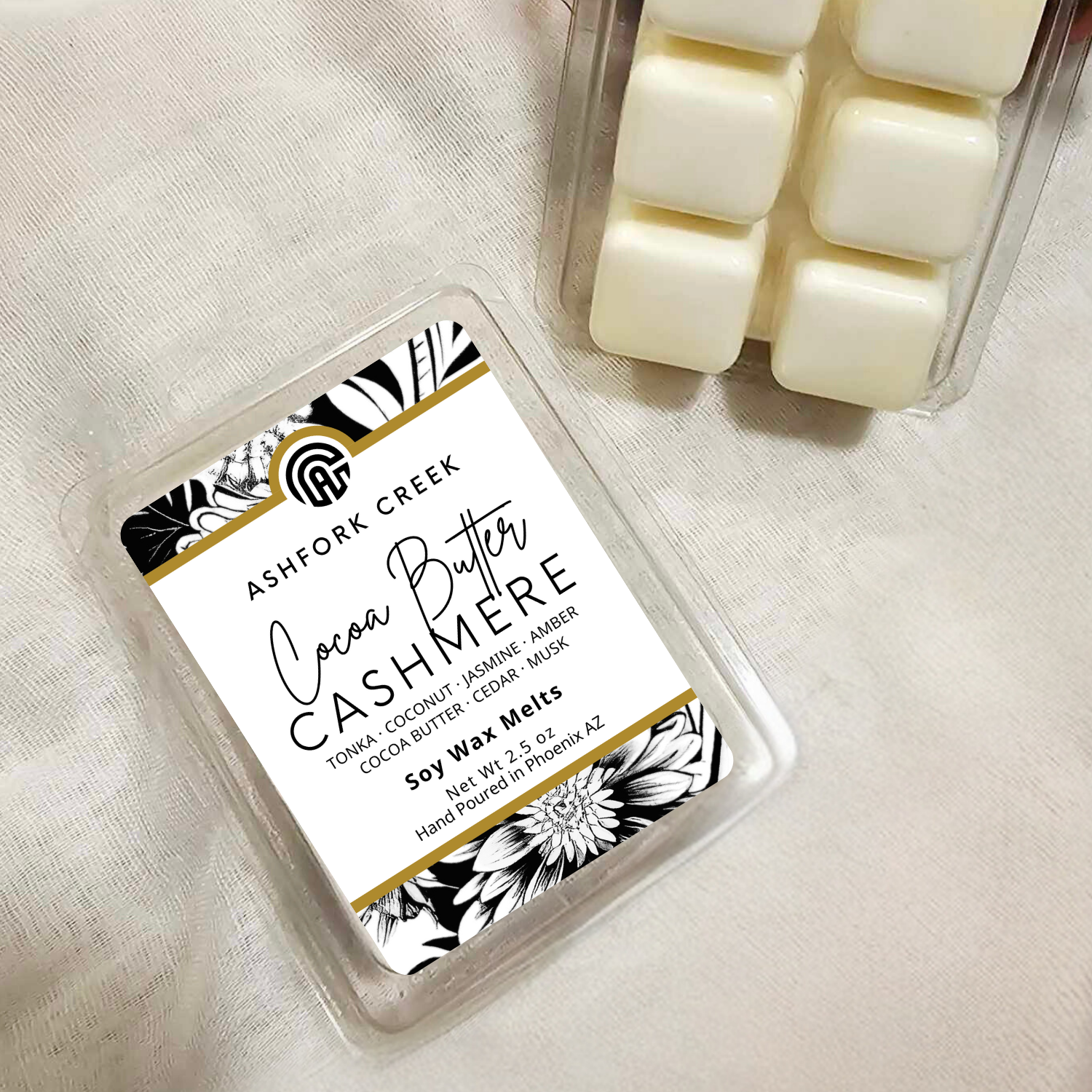 Cocoa Butter Cashmere A comforting blend of warm, woodsy, and sweet notes. Imagine the gentle touch of light spices and cedar wood mingling with the rich aroma of vanilla tonka, warm coconut, and jasmine petals.