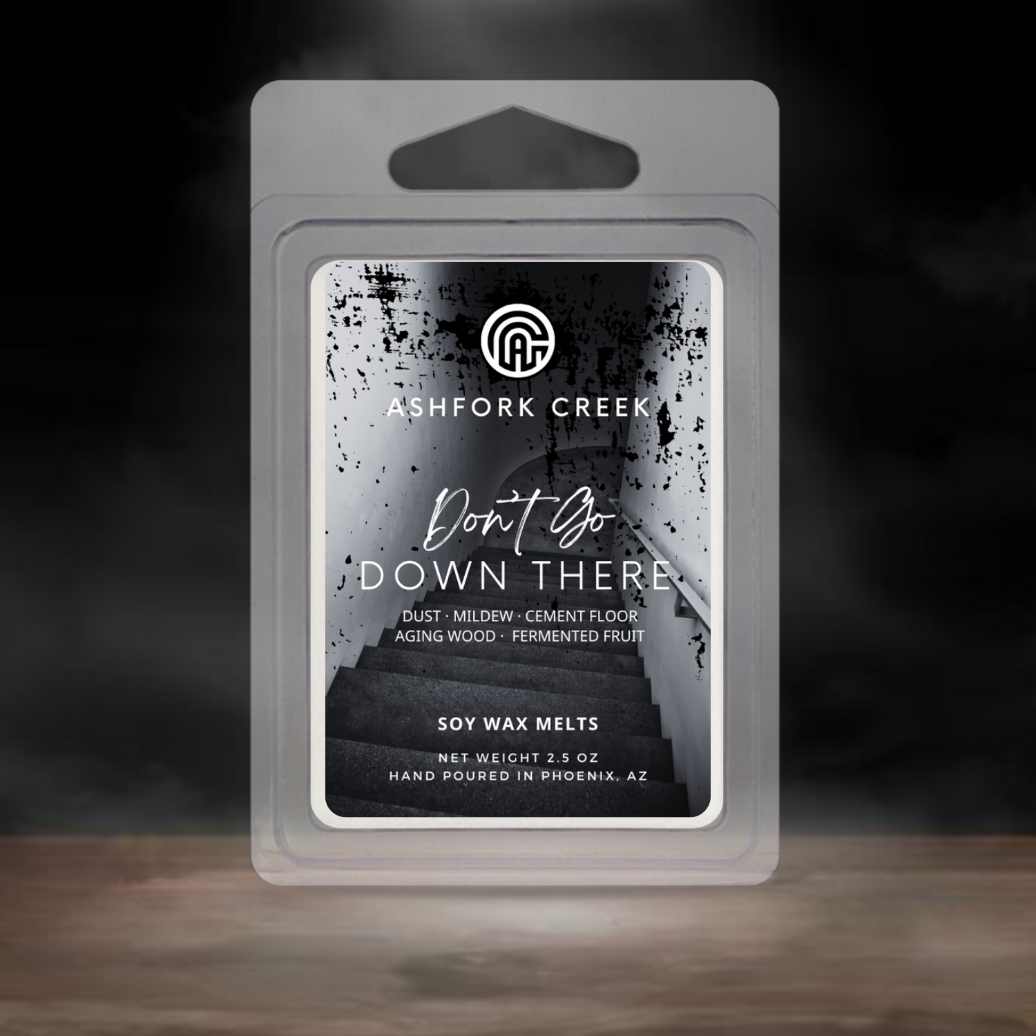 Don't Go Down There captures the essense of a creepy root cellar you dare not enter—where dust settles thick, mildew lingers in the air, and the cold cement floor meets weathered, aging wood. This haunting aroma is crowned with a bouquet of fermented fruit, like a forgotten bushel left to rot in the shadowy corner.
