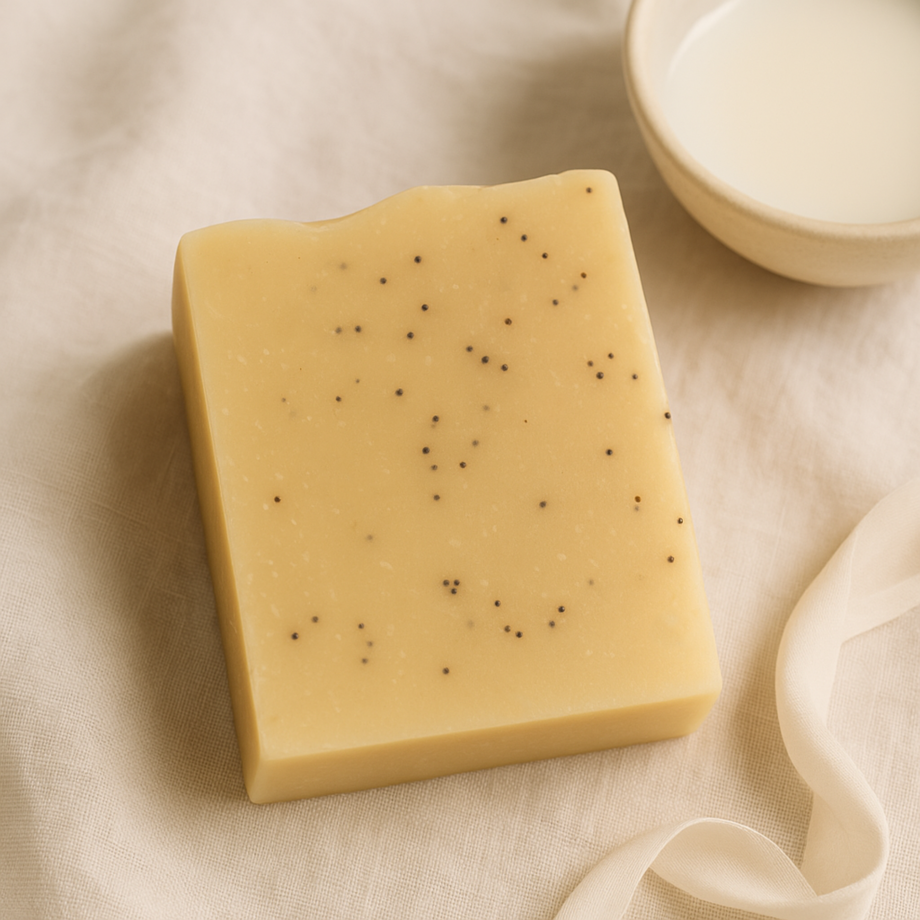 Bright, cheerful, and refreshingly smooth — this handcrafted soap combines the uplifting scent of pure lemon and litsea cubeba essential oils with the gentle nourishment of fresh goat milk. A touch of tussah silk gives each bar its signature glide, while poppy seeds offer light, natural exfoliation for soft, polished skin.